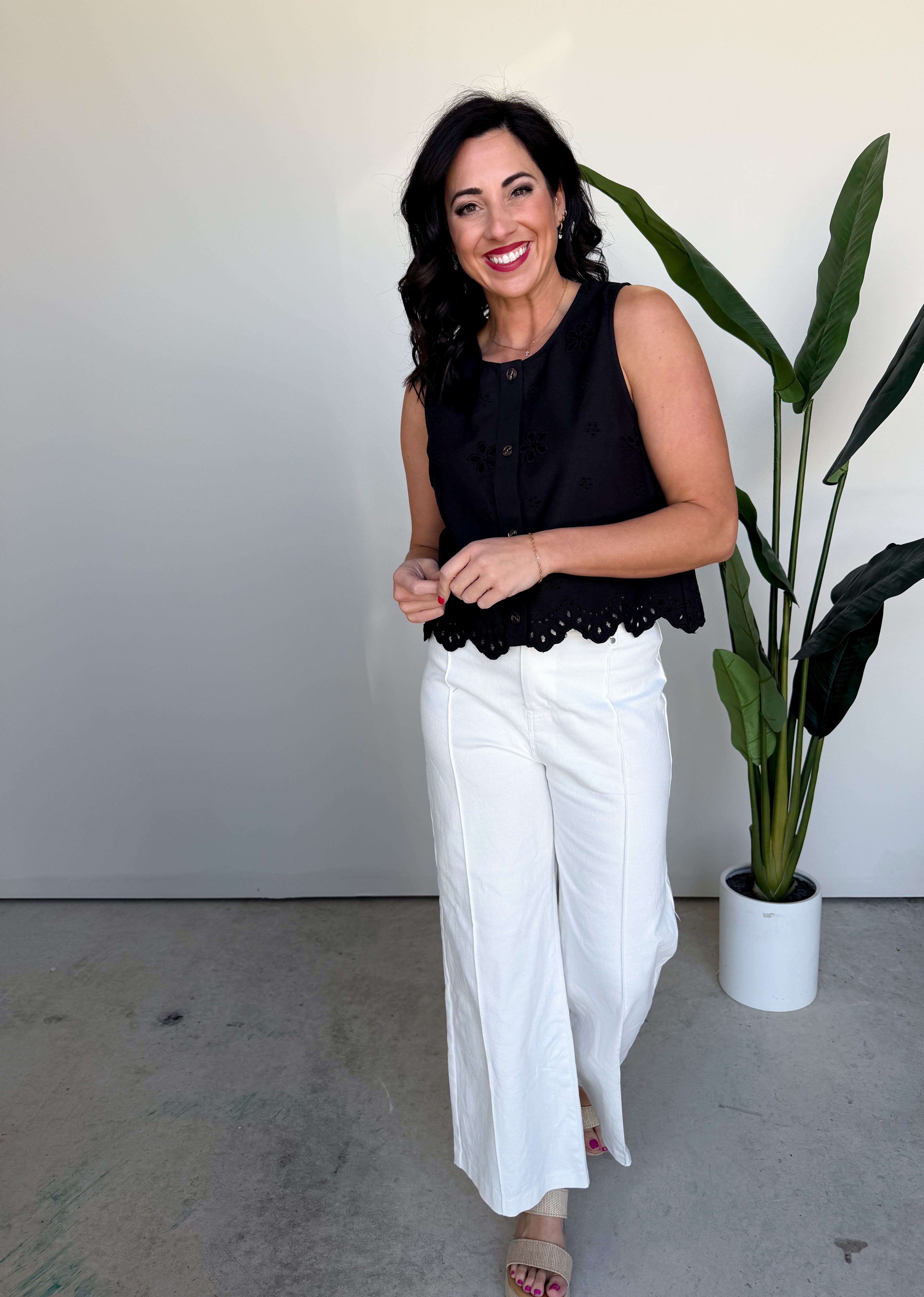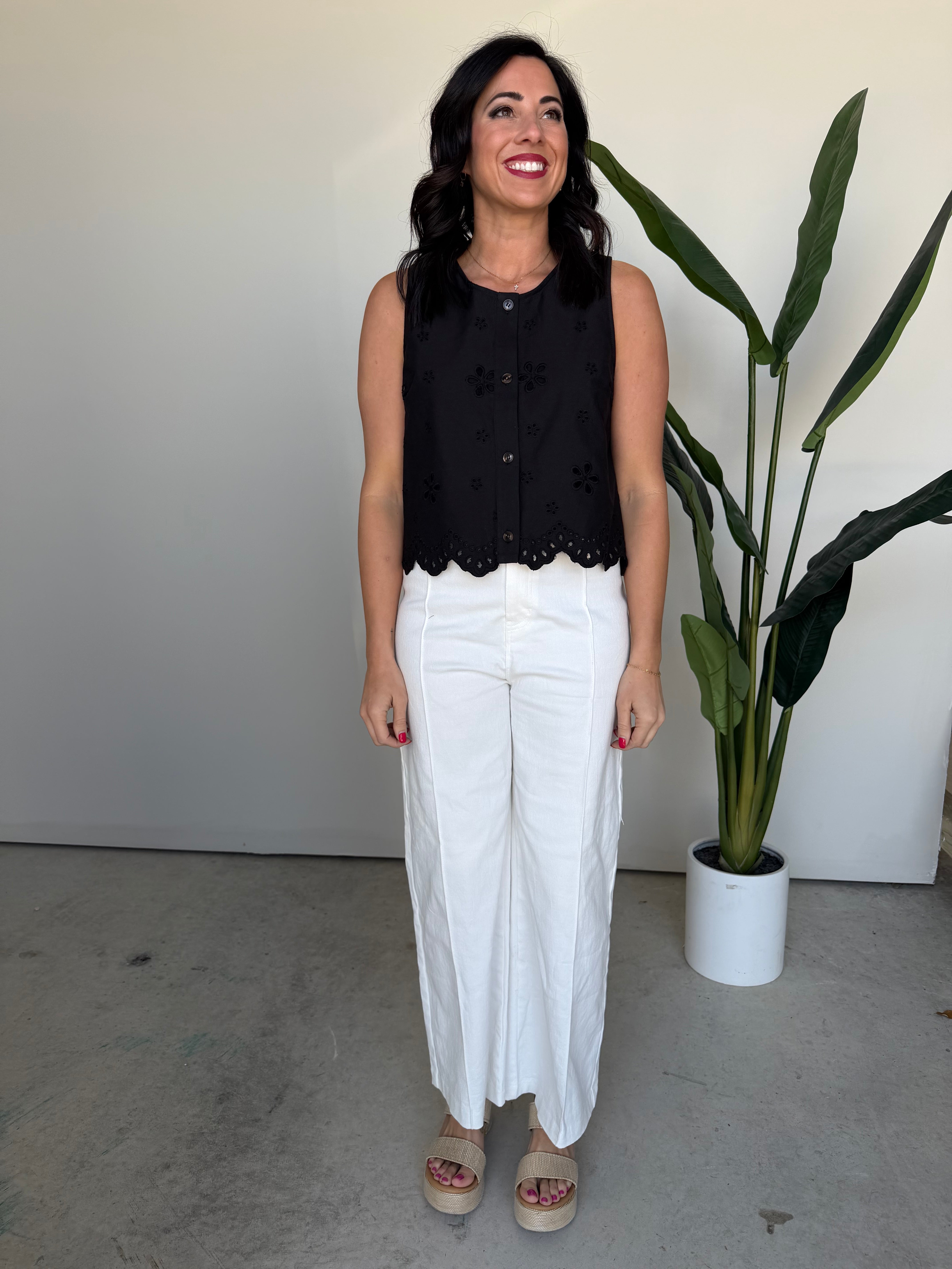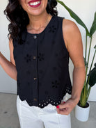 The Drew Eyelet Denim Top (Black)