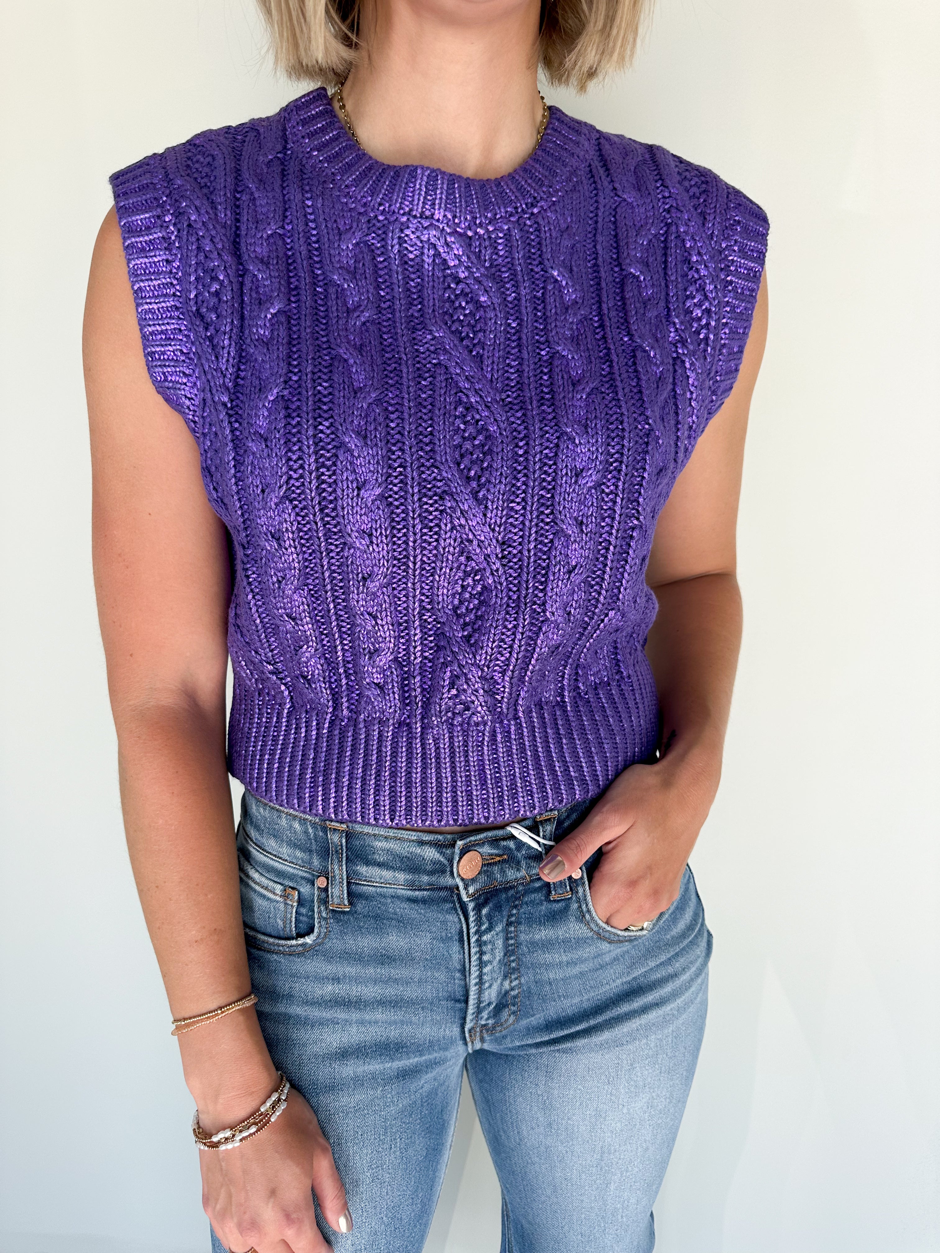The Iris Metallic Knit Top (Purple)