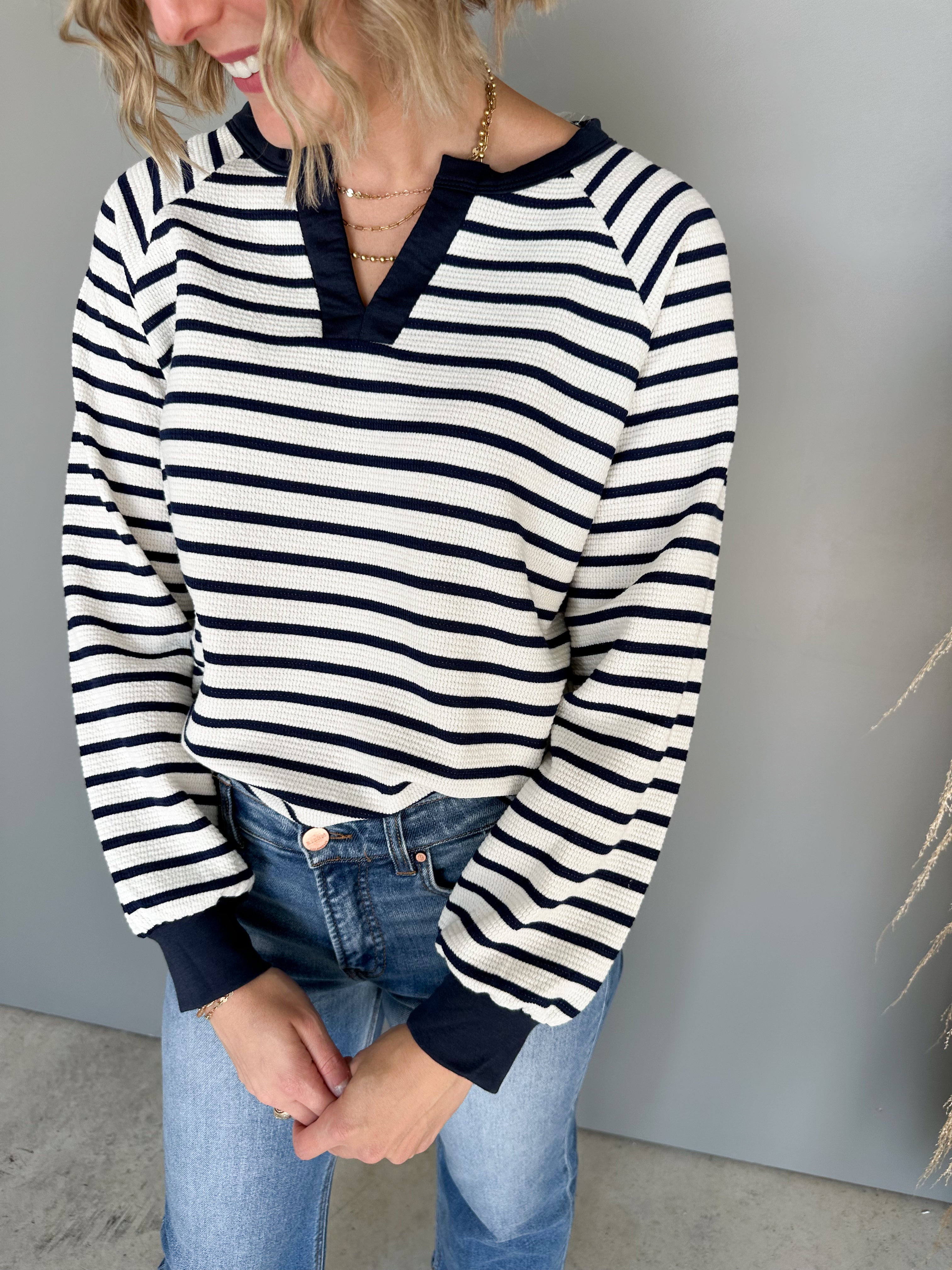 The Lacombe Striped Top (Navy)