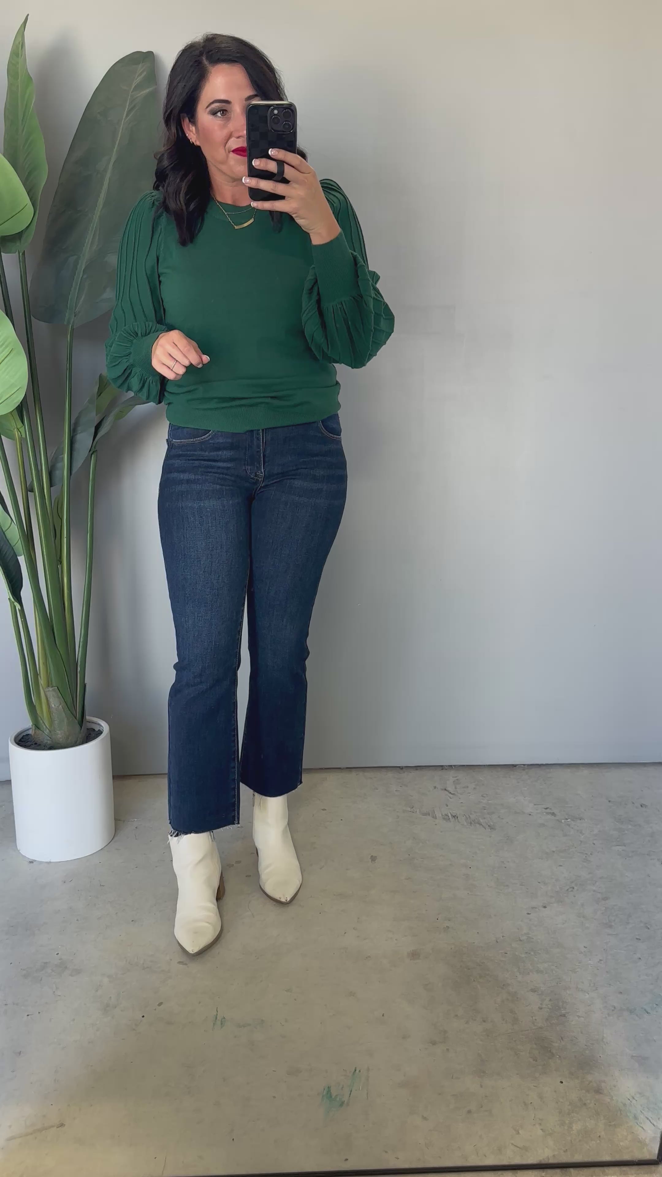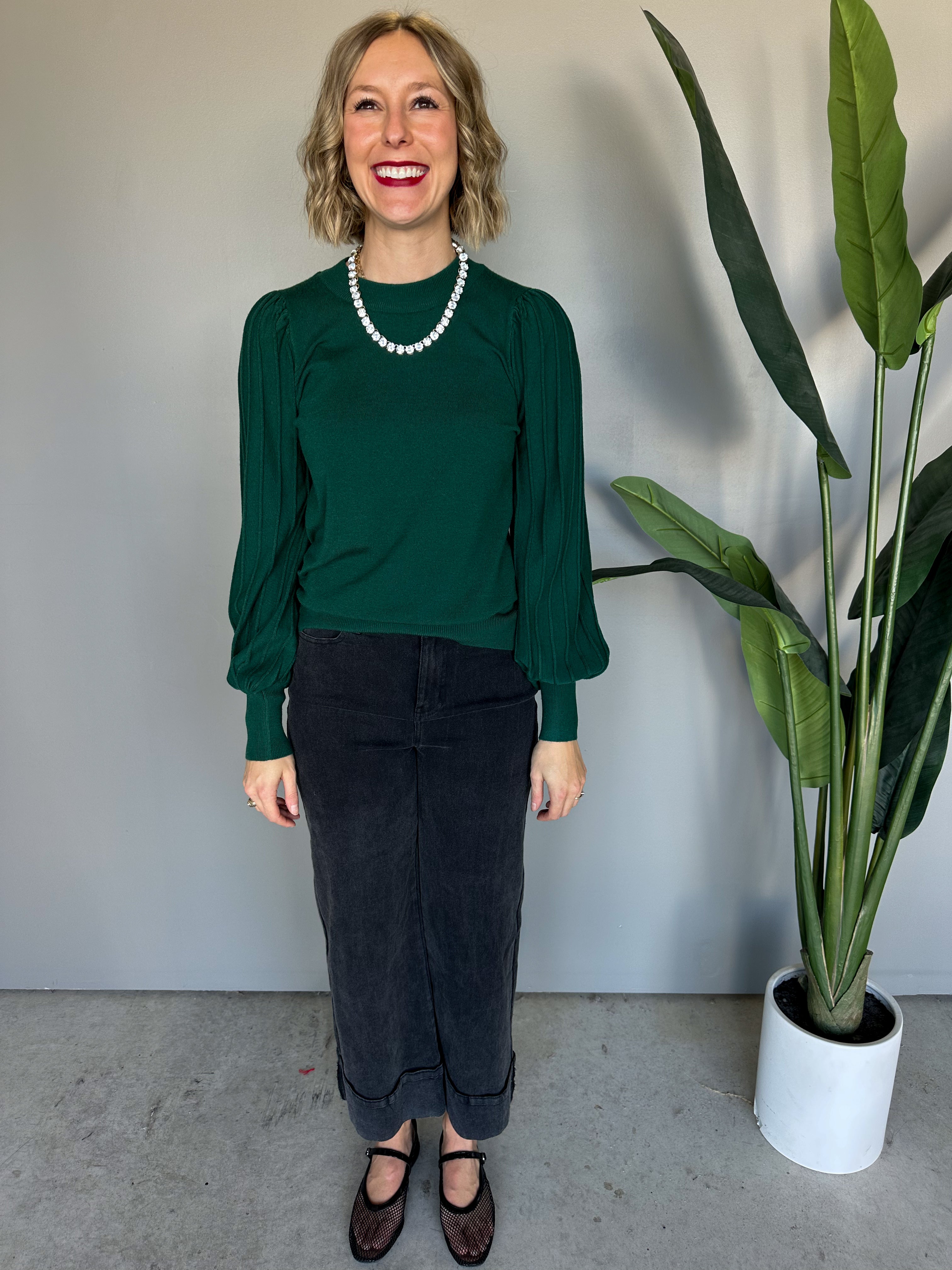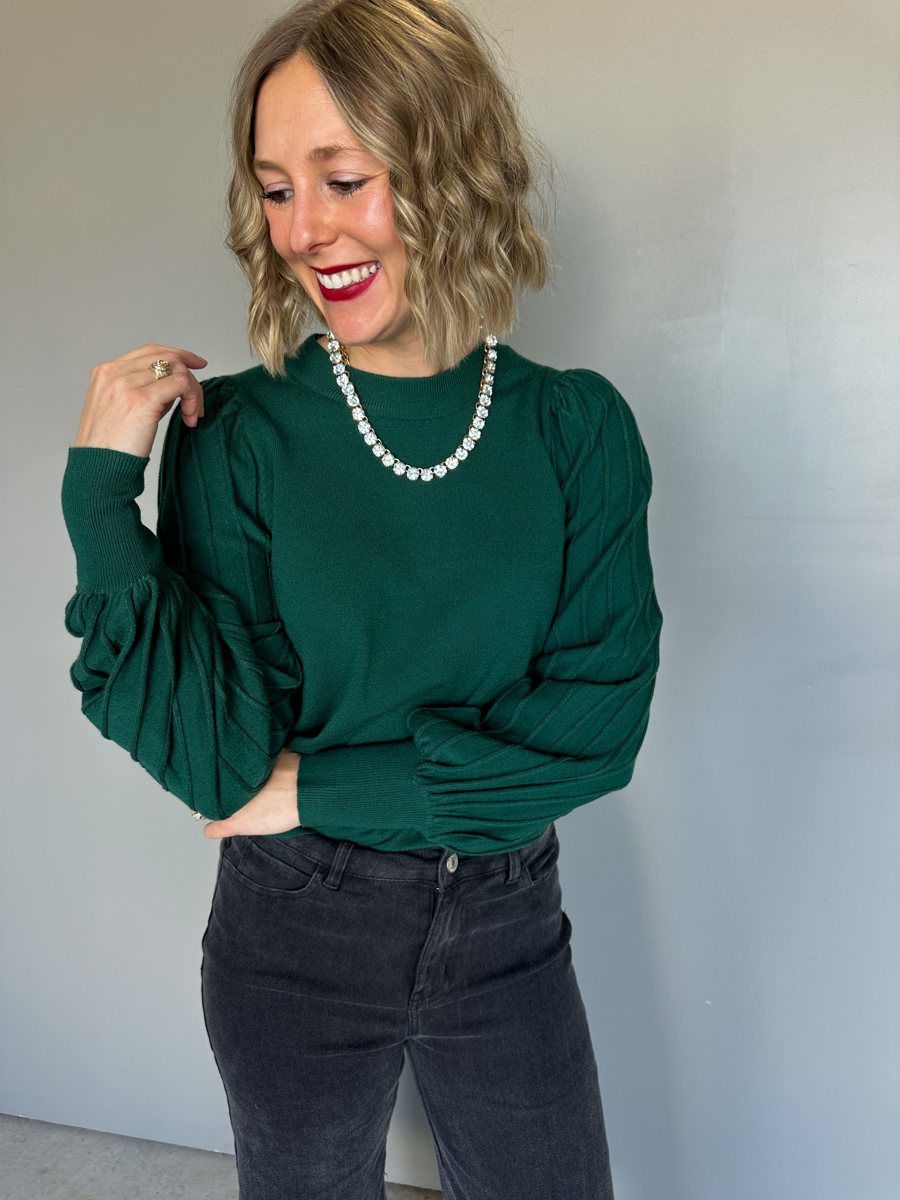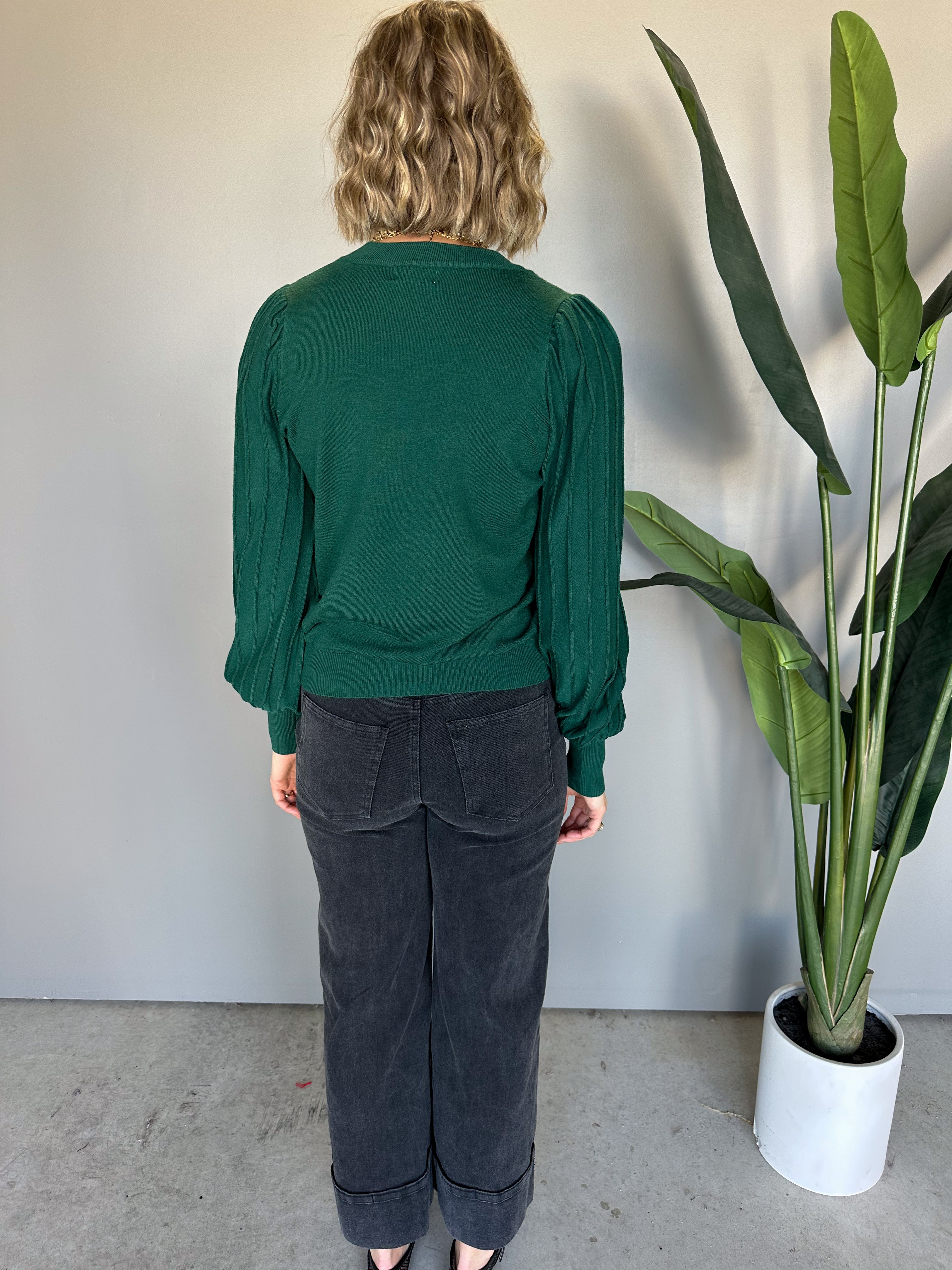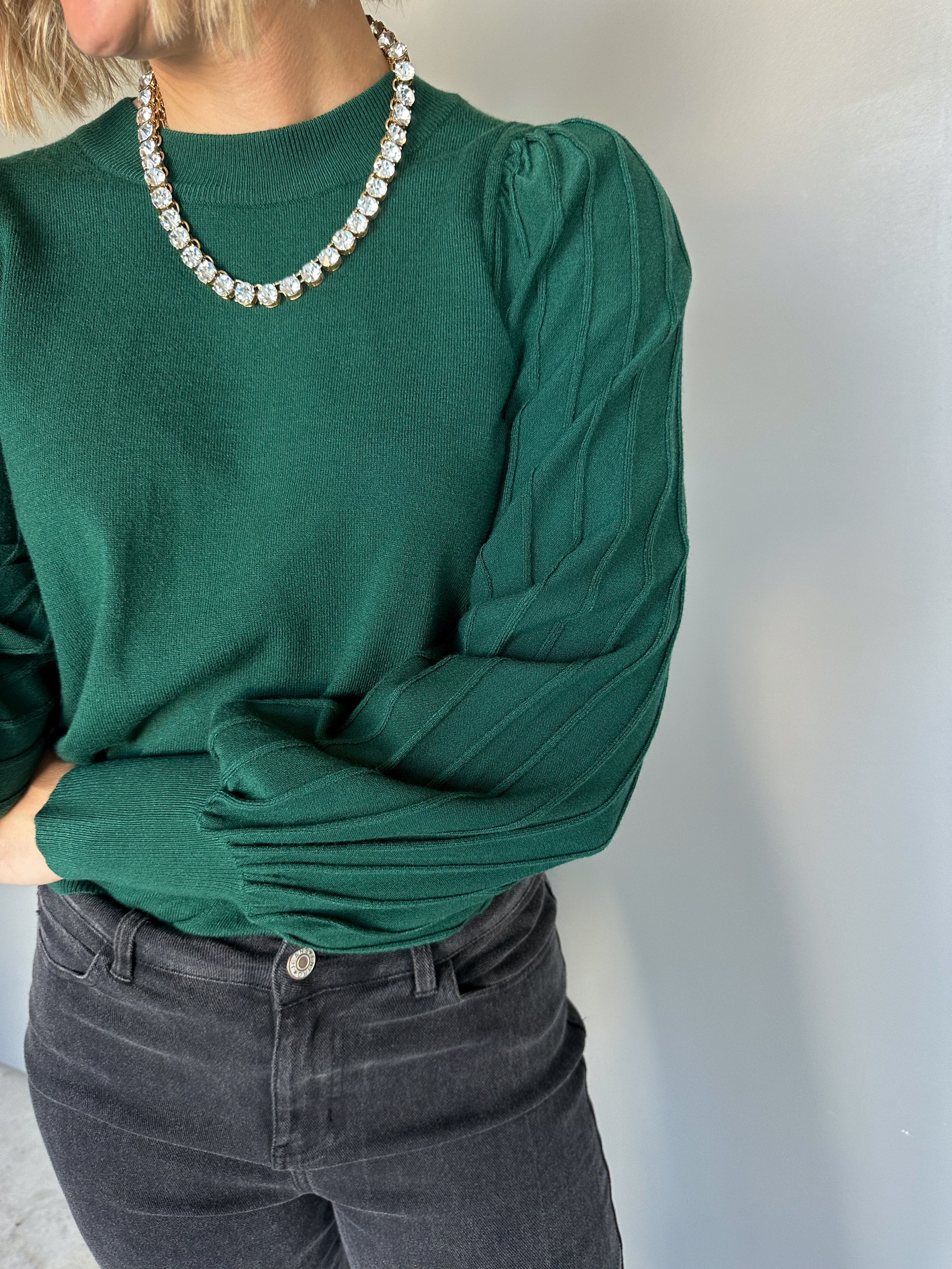 The Keene Ribbed Sleeve Top (Forest)