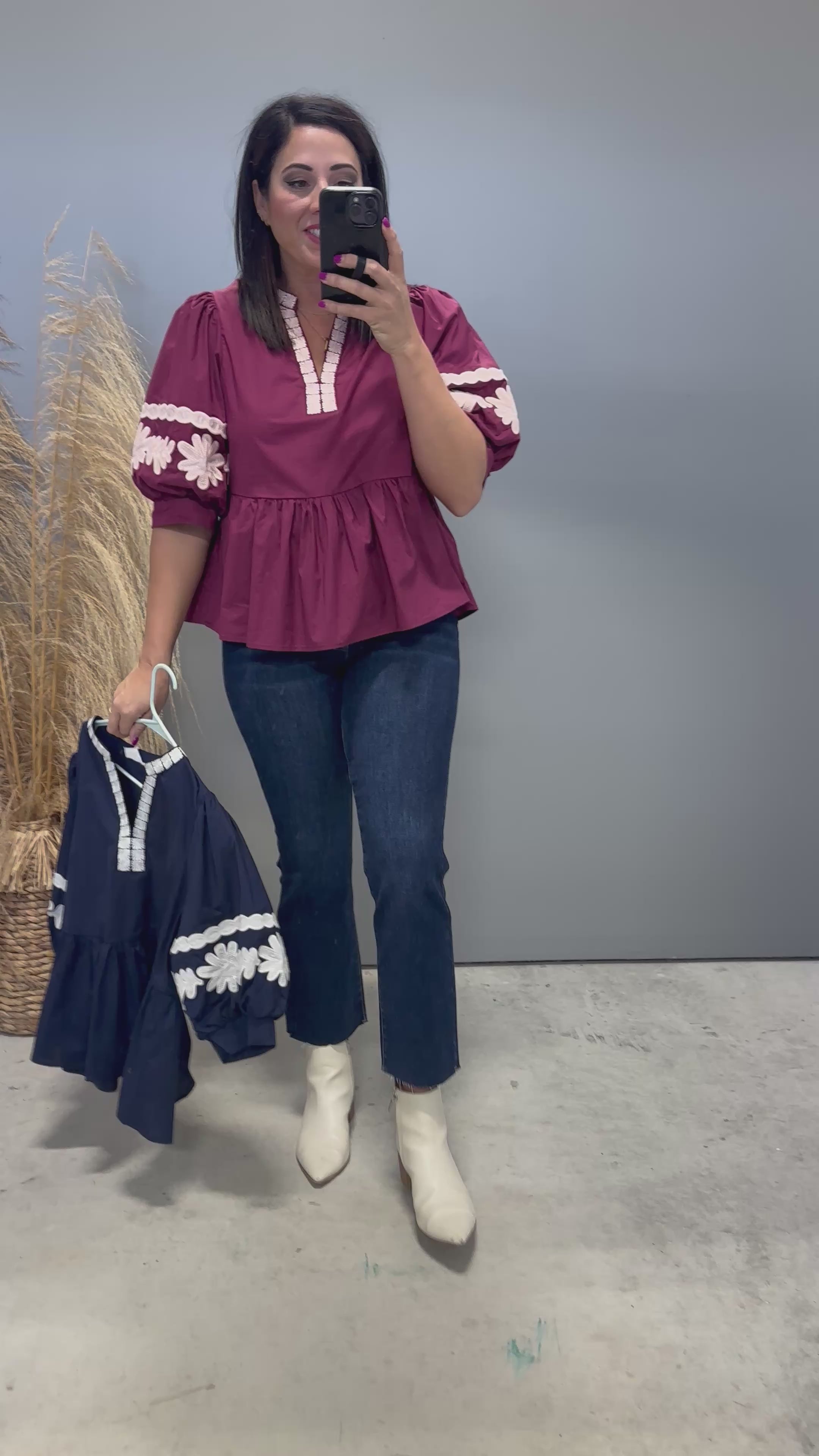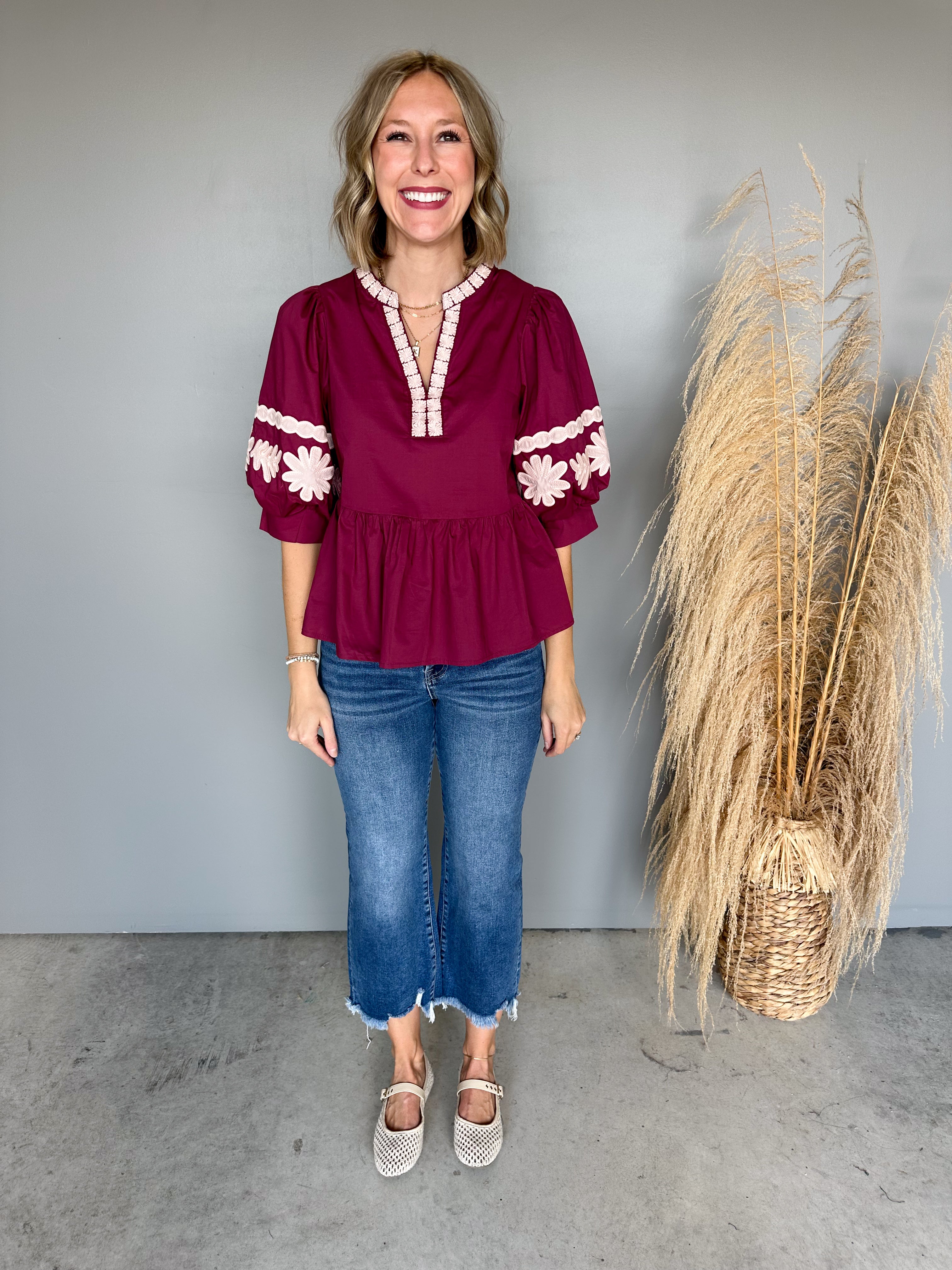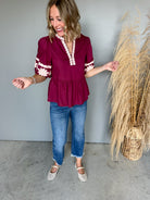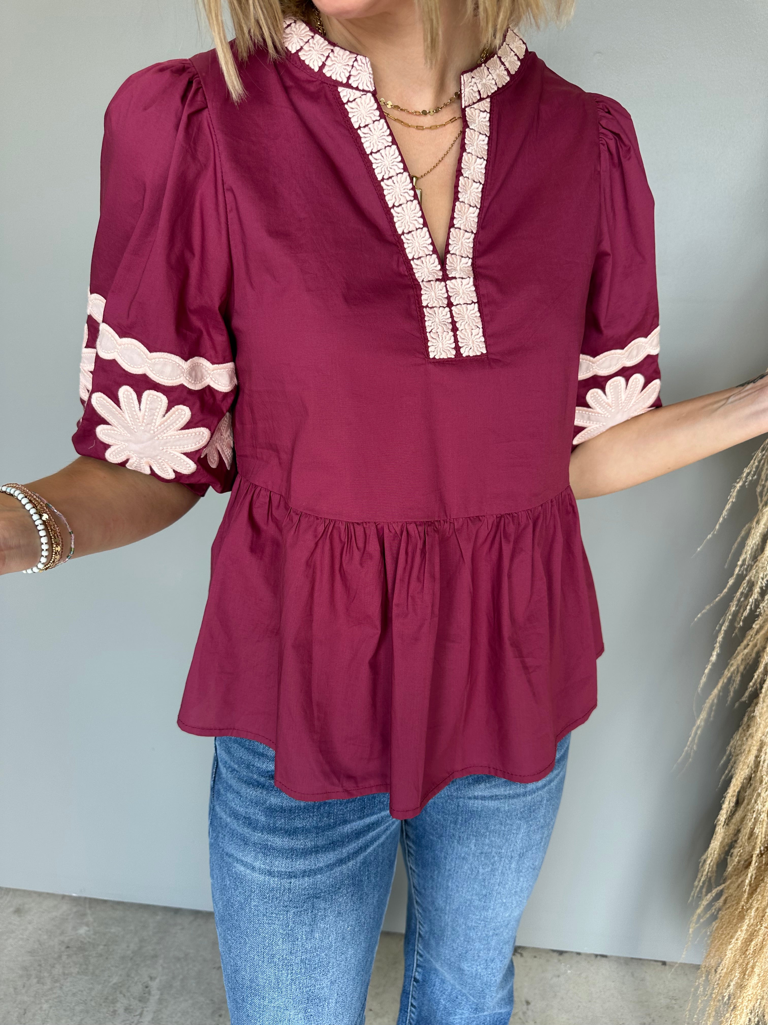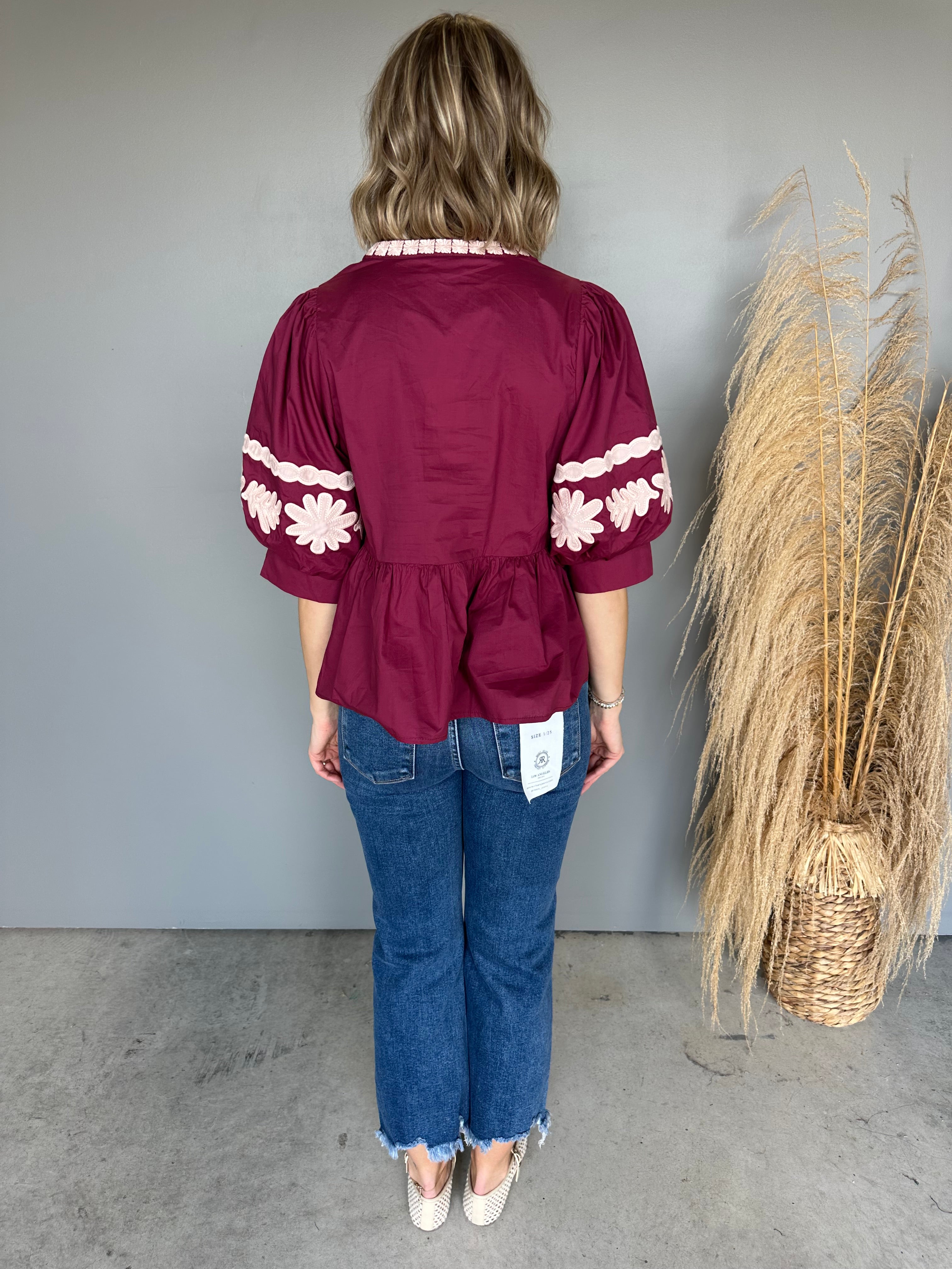 The Leilani Embroidered Top (Merlot)